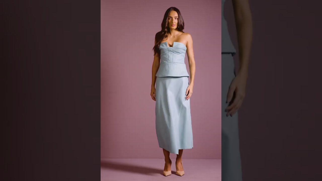 Top confeccionado em material sintético com textura que remete ao couro, modelagem estruturada, recortes estratégicos, detalhe pespontado em padrão geométrico, decote tomara que caia com recorte frontal reto, parte posterior com aplicação de lastex para melhor ajuste ao corpo, fechamento por zíper de metal nas costas, barra levemente evasê.